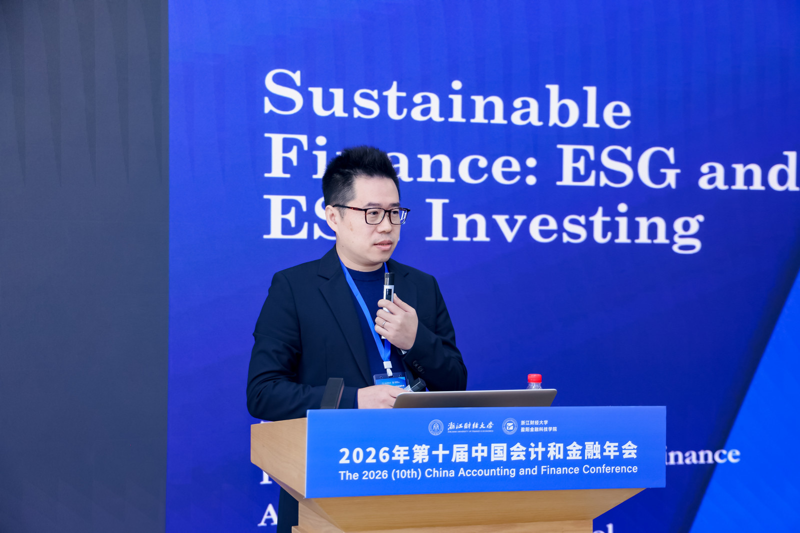 南洋理工大学陈涛教授以“Sustainable Finance: ESG and ESG Investing”为题,阐述了在可持续金融下的ESG相关研究成果,重点分析了ESG(环境、社会和治理)因素对企业政策与投资决策的影响,并提及碳交易等未来研究方向。